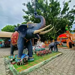🔥Don't miss this amulet-lover's destination: pass under the Rahu shrine in the Sattahip area at Wat Chong Samet San, an ancient temple in Samet San. A key activity is passing under the Rahu shrine for good fortune and blessings for prosperity in all aspects.