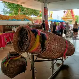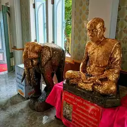 Pay respects and ask for blessings from Luang Pho Dam, a meditative Buddha image enshrined inside the chapel. The entrance wall is beautifully carved. Inside the temple is a large viharn (ordination hall). The temple is situated on a hill, offering panoramic sea views.