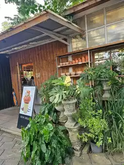 Let's talk about the surrounding atmosphere. It's definitely shaded by trees, and the decor is beautiful, clean, and has a great mood. It's perfect for taking photos. You'll never get bored. There's even a small workshop in front of the shop for kids and adults who love cute, artistic, and adorable things to try while waiting for their croissants to bake.