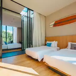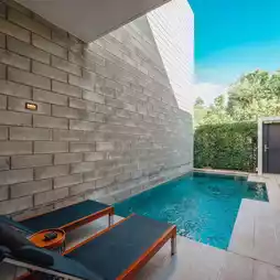 We recommend the Two Bedroom Pool Villa, a private two-bedroom pool villa for groups of friends or families. It can accommodate up to four people. For larger groups, there's also the Four Bedroom Pool Villa, which can be connected, totaling four bedrooms and two swimming pools, perfect for larger groups.