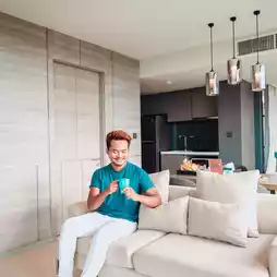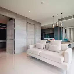 We recommend the ONE BEDROOM CORNER SUITE SEAVIEW, a suite with separate bedroom and living room areas, a dining table, a kitchen counter, and full amenities. This room is perfect for those who enjoy spacious accommodations. Additionally, the suite includes a balcony where you can relax and enjoy the sea view or the cool breeze.