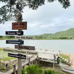 Today, we're featuring Rim Ang Cafe, located inside the Sattahip New Soldier Training Center. This cafe is perfect for relaxing in a shady atmosphere under large trees. There's also a large reservoir for taking photos. They also offer a menu of delicious drinks and desserts. Sometimes, soldiers even come to sing for you, giving you a relaxing atmosphere. Highly recommended! The vibe is amazing and incredibly healing.