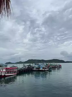 This cafe has a lovely atmosphere right on the pier in Samae San. If you're visiting this area, don't miss it! The open-air cafe offers a stunning view of the harbor. The atmosphere is captivating, with crystal-clear blue waters, islands contrasting with the greenery. The cafe's cute brown and white color scheme makes it even more relaxing. They also serve drinks and desserts at reasonable prices, making it a great place to visit.