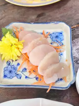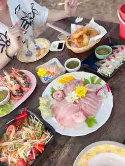 Let me tell you, the Thai-style sashimi here is absolutely amazing! Every time I visit Pattaya, I make sure to stop by this restaurant. I've been here at least three times already, and I'm impressed every single time. The fish is fresh, delicious, and the breeze is perfect. On the day I visited, the weather was pleasantly cool, not hot at all. Normally, I would order squid sashimi as well, but they only had large sizes left that day, which was too much for just two people, so I skipped it. Instead, I tried the marinated shrimp, and it was just as tasty. Overall, it was a fantastic experience. If you're looking to try Thai-style sashimi, I highly recommend this place!