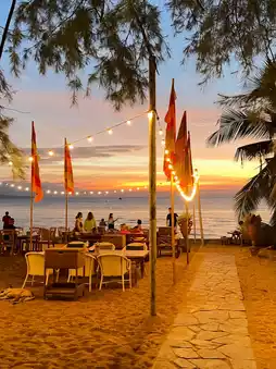 The most appealing aspect of this place is its seaside views, especially at sunset, which are incredibly romantic. In the evening, the sea shimmers in the sunlight. Enjoy a coconut milk while gazing at the stunning sunset. In the evening, the club features live DJ music, further enhancing the laid-back atmosphere.