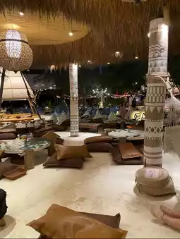 Located on Pattaya's private beach, Cave Beach Club attracts visitors with its unique cave-style design and seaside resort atmosphere. The overall ambiance is both relaxed and stylish, with numerous thatched roofs creating a cave-like feel. You can enjoy this unique design indoors or in the outdoor dining area, enjoying the relaxing atmosphere while gazing at the ocean.
