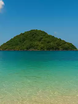This angle instantly calms the heart—the lush green Koh Kham floating amidst a gently gradual blue sea.