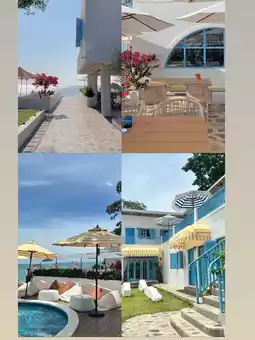 This white-and-blue cafe is located by the sea near Bang Saray Beach in Pattaya. The blue sea and the breeze are