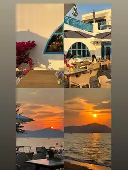 Santorini style, absolutely stunning. I was captivated from the moment I arrived. Every angle and angle is breathtakingly beautiful! The first day I arrived, the sun was setting! The view was so romantic! The photos I took were taken the next morning. People were starting to arrive.