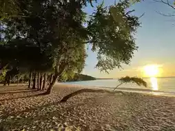 🌅 This beach is known for its crystal-clear waters and gentle waves, perfect for a relaxing swim or a leisurely stroll along the beach. 🏖️ In the evening, as the sun sets, the sky turns a vibrant orange-pink against the sparkling water, creating an incredibly romantic atmosphere. 💕
