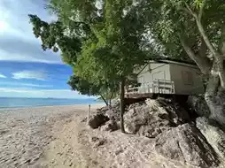 🌳 Another highlight here is the row of large trees lining the beach, providing shade and creating chic photo opportunities. 📸 The "leaning tree" 🌳 is a popular spot for photos, a must-see for anyone visiting. It's truly charming and unique.