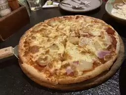 Nithan Pattaya - Coffee Tel is located in Sattahip District, Chonburi Province. There's plenty of parking, so don't worry about finding a spot! The interior is luxurious and the atmosphere is amazing. It's perfect for chilling out and chatting with friends, family, and even the occasional group. Most importantly, the food and drinks are excellent. There were three of us and we ordered a pizza, spaghetti carbonara with salted fish (the restaurant's signature dish). It looked so delicious, so we ordered it. I didn't expect the carbonara with salted fish and some kind of salad with ripe mango to go together. It was so refreshing. We finished off with a piece of cheesecake with a chocolate chunk on top for a light palate cleanse. It was incredibly smooth and filling. It was a complete meal, complete with beautiful photos, and the atmosphere was amazing, along with the beautifully presented and delicious food. This is a cafe I highly recommend to everyone.