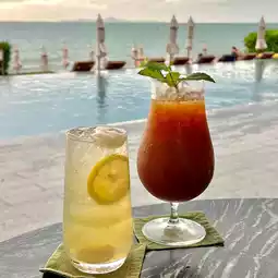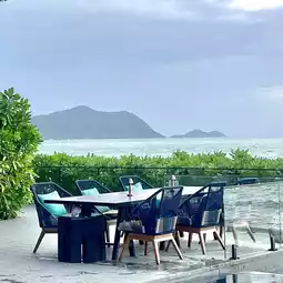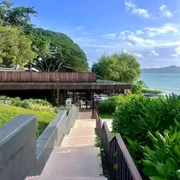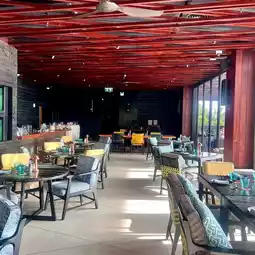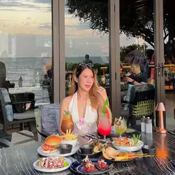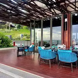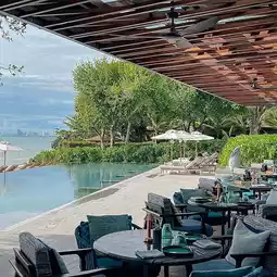“Fish Club,” an international restaurant hidden within the luxurious Andaz Pattaya resort, features a beautifully decorated interior dominated by brown tones. There are both indoor and outdoor seating options, offering views of the pool and sea, with mountain views across the street. It's incredibly relaxing, offering a truly relaxing dining experience.
