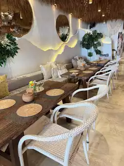 Cave Beach Club is a beachfront cafe and club in Pattaya (Jomtien / Na Jomtien). Decorated in a Balinese and Bohemian style, it combines minimalism with natural materials such as bamboo and palm leaves. Decorated with kayaks, surfboards, and more, the atmosphere is very chill, perfect for relaxing, chatting, taking photos, and watching the sunset. The shop is open late (until midnight).