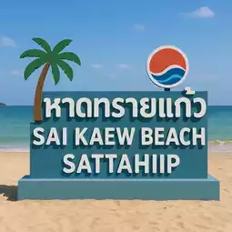 🌴✨ Sai Kaew Beach, Sattahip: A blissful day in Chonburi, filled with the vibrant colors of nature and the simplicity of local life. Start by riding a classic songthaew (minibus) from in front of the military base to Sai Kaew Beach. The roadside scenery is lined with lush greenery and a gentle sea breeze. Upon reaching the beach, stop and take a photo with the popular landmark sign "Sai Kaew Beach, Sattahip." 📸