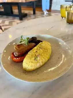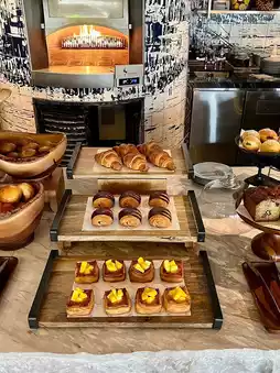 The English Muffins, freshly baked by the hotel, exude a delightful aroma that tempts you from the moment you see them. They have a slightly chewy texture with a perfectly crisp exterior—not too dry or hard. Cutting into them reveals their freshness instantly.