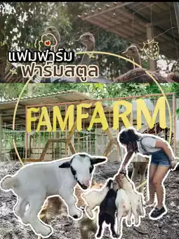 Fam Farm & Cafe Satun 🐓🐇⛰️ is a small farm with a cafe, drinks, bakery, and snacks. 🍤📍 Located on Soi Ban Khok Phayom 1 (behind the kindergarten, near Ratchaprapha Stadium), the entrance is small, so don't be alarmed. Follow the GPS. Parking is available. 🚘🚗💰 There's a 20฿ entrance fee, which can be used to discount animal feed or food and drinks. 🐓 They have chickens, mini goats, deer, fish, capybaras, turtles, rabbits, and ostriches. Overall, I highly recommend it. It's a small, warm, and relaxing activity. You can get up close and personal with the goats. They're so playful! 😍