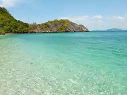 Koh Kiang has a white sandy beach where we can walk and there is a spot for snorkeling in the shallow water in front of the beach. The water is very clear and the colors are beautiful.