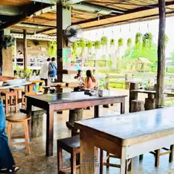 🍺 "Rabiangkafe" is a coffee shop that is famous for its good atmosphere and beautiful view, especially the view of the green rice fields that are pleasing to the eyes. The shop has a spacious area, both an air-conditioned zone and an outdoor terrace zone that is open to the natural breeze, suitable for sitting and relaxing or taking beautiful pictures.