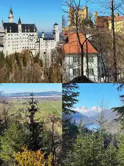 Next, jump off at Schwangau for Neuschwanstein Castle (Neuschwansteinstraße 20, 87645 Schwangau, Germany). If visiting April–Oct, aim for the early 9:00 AM opening—less crowd, epic photos! Admission is €19.80, and it’s worth every cent for the dramatic mountain backdrop and inside tour. Outside, hike up to Mary’s Bridge for panoramic shots!