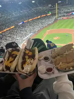Enjoy a hot dog while watching a baseball game! It’s a night full of American vibes⚾️.