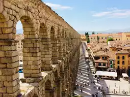 Segovia, located northwest of Madrid, was once the center of the Kingdom of Castile. Its old town, nestled on a rocky outcrop, boasts numerous Roman architectural structures, including the Roman Aqueduct, Alcazar de Segovia, and the Cathedral. Even the surrounding city walls date back to the Roman era.