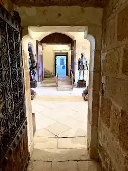 Evening inside the Alcázar is pure stillness. The grand halls, once filled with the sounds of footsteps and whispers, now hum quietly with the echo of the day. The stained-glass windows dim into deep tones — ruby, sapphire, and amber. The light softens everything, turning sharp edges smooth. You wander slowly through the rooms, feeling both awe and calm, as if you’re walking through a living memory. Outside, the sky darkens, and the world turns peaceful.
