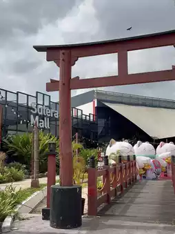 Outside the mall, there’s something that really completes the whole vibe—a bright red torii gate standing tall near the entrance. It’s unexpected in a shopping mall setting, but somehow works. It gives the place a little cultural charm, like a soft nod to Kyoto streets or a hidden alley in Japan. That little touch sets the tone even before you walk in, and honestly, it matches the quiet elegance of Furiku really well.