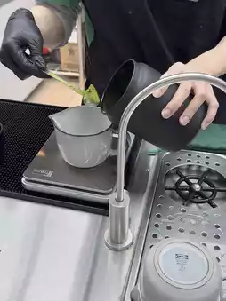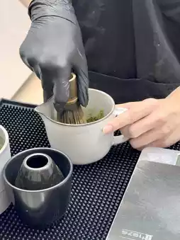 What made it extra special was watching the whole process unfold. Right in front of us, the staff began the ritual of whisking matcha from scratch—the bamboo whisk moving in smooth circles in a little glass bowl, the deep green powder dissolving into a velvety swirl. It’s kind of meditative, and it really adds to the appreciation of what you’re drinking.