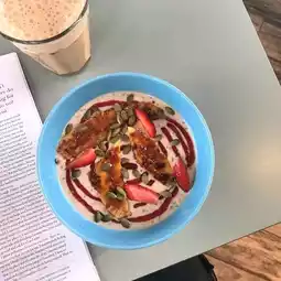 The pancakes are dense and dry but the clotted cream and blueberry foam were delightful! The salmon paratha is so so. Cold pressed juice was meh, felt like it was out of a bottle. The Colombian eggs were tasty! Hot chocolate was also good.