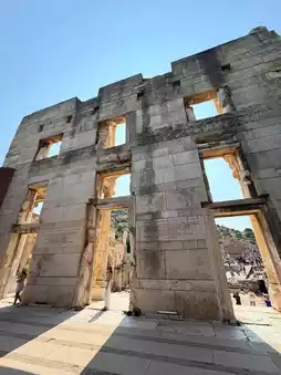 As you walk along the cobblestone streets, you will see magnificent colonnades, theaters, and library ruins on both sides, and the facade of the "Celsus Library" is particularly impressive. 📚