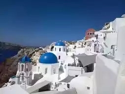 Sail to Santorini, Greece, famed for its whitewashed villages, blue-domed churches, and stunning caldera sunsets 🌅.