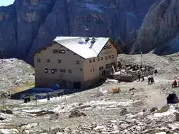 Mountain huts (rifugi) where young people gather for food, drinks, and lively atmosphere after activities.
