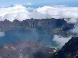 At its heart lies the magnificent Segara Anak Crater Lake, whose turquoise waters contrast beautifully with the surrounding peaks.