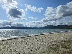 It seems that you can swim in this area in the summer. The sparkling white sand with slightly larger grains was beautiful.