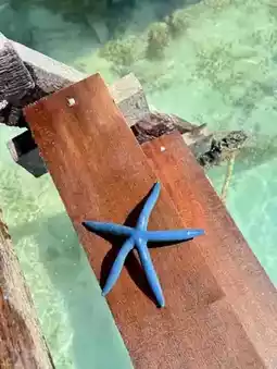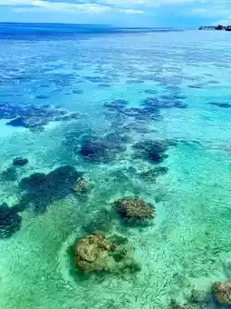 The ocean here transforms with the sunlight throughout the day, shifting through shades of blue like a painter’s palette. At times, it reveals crystal-clear greens where vibrant fish and coral thrive—truly a divine aquarium 🏖.