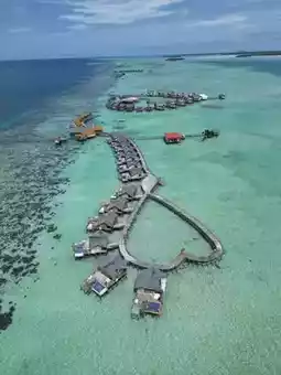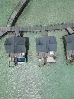 The newly opened Semporna Jellyfish Sea Water House in 2023 features crystal-clear waters and faces the Marine Park, offering 180-degree unobstructed ocean views. Enjoy a variety of water activities like snorkeling 🤿, sea fishing 🎣, and glass-bottom boat rides. The spacious terrace allows direct access to the sea, and the Instagrammable net hammocks are perfect for photos 📷. Chinese-speaking concierge service ensures smooth communication.