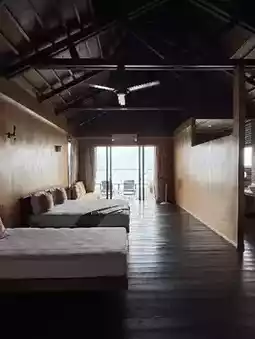 First, stepping out of your bedroom leads directly to a spacious private deck over the sea, about the size of a small bedroom. The privacy is excellent, allowing you to enjoy intimate moments with the ocean as your backdrop. Most of the time, I find myself sitting by the edge of the deck, gazing at the crystal-clear waters. In the morning, stingrays gather, and at night, sea turtles swim by. The most magical moments are at night, lying flat on the deck's lounge chair, stargazing—it’s pure bliss.