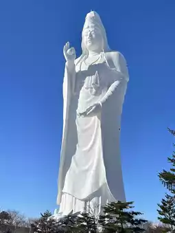 • The 100-meter-tall Kannon statue can be seen from afar. The Kannon statue standing against the blue sky, sunset, and seasonal scenery is spectacular.