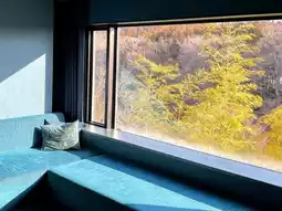 The spacious and comfortable Japanese-Western style rooms feature beige tatami mats and sky-blue sofas, creating an elegant and sophisticated atmosphere. Guests can enjoy views of the mountain stream and listen to the soothing sounds of flowing water and gentle breezes, making it incredibly therapeutic.
