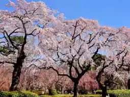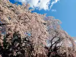 From the entrance, you can see the blooming Somei Yoshino cherry blossoms, which are as pink and white as snow and quite dreamy. There are also big red camellias blooming nearby, which is really beautiful.