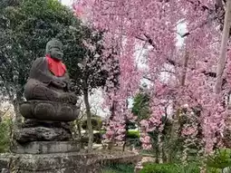 The temple grounds offer different scenery throughout the year, featuring a variety of plants such as weeping cherry trees, Yoshino cherry trees, azaleas, dogwoods, and citrus trees. During the peak cherry blossom season, the temple enhances the experience by setting up red carpeted benches and illuminating the grounds at night. Visitors can enjoy the beauty of traditional Japanese temple architecture alongside the blooming cherry blossoms, creating a truly thoughtful and picturesque experience.