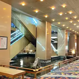 It's luxuriously built, and there are even carp in front of the hot spring entrance 🐟
