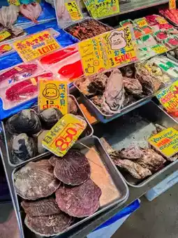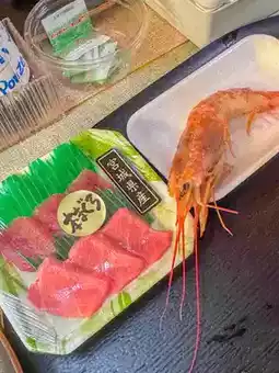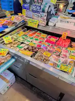 For fresh seafood, this is the place to go. You can choose your seafood and have it cooked on the spot. Items like oysters can be opened and eaten immediately—they're plump and flavorful with a strong taste of the sea. Miyagi Prefecture's tuna sashimi has evenly distributed fat and a delicate texture. The sweet shrimp was decent but not particularly impressive, though everything was fresh. I also ordered grilled scallops, which were satisfying when paired with soy sauce and shichimi powder available at the table.
