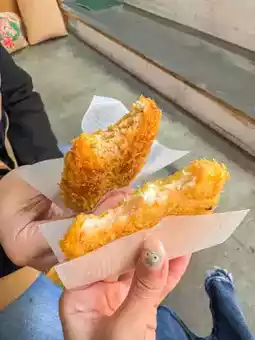 This specialty fried food shop is extremely popular. As you pass by, you'll catch the enticing aroma that makes it hard to resist buying one to eat on the spot. There's seating nearby for you to enjoy your food. The prices are reasonable, and there are plenty of options. I highly recommend the ham and cheese croquette!