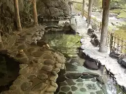 The streamside open-air hot spring is located by the upper reaches of the Hirose River, preserving the scenery from the time the spring was discovered. The Hirose River, with its deep valleys and shallow streams, is approachable and inviting. Dense vegetation on both sides immerses visitors in the essence of the forest.