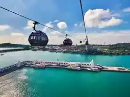 When you are in Sentosa Singapore, you must follow the cable car. Two options are there, one is shorter trip with the jungle view and little portion of the beaches and less with hight, whereas another one is higher than the jungle view and covers the whole sentosa, including the jungle view and the sea, and the cable car goes over the sea, which is really thrilling, which takes around 1 hour. It is a breathtaking adventure, and it is highly recommended!