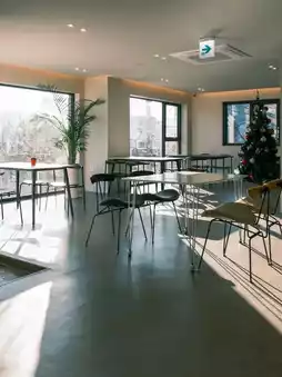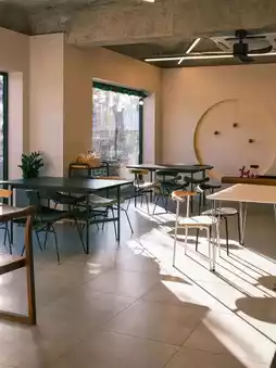 Passing through the grand exterior reminiscent of someone's mansion, you enter a spacious and comfortable space from the first to the second floor. The white cleanliness is interspersed with oil paintings that convey artistic inspiration, and the bright sunlight pouring in through the glass windows adds to the deep emotional feeling of being in a gallery.