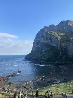#koreatrip At the base of the peak, visitors can explore a charming seaside area with Haenyeo (female divers) performances, showcasing Jeju’s unique cultural heritage. Nearby cafes and food stalls offer local treats, adding to the experience.