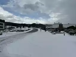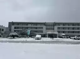 The garden in front of the hotel, which became a completely white world after the snow fell, is beautiful.